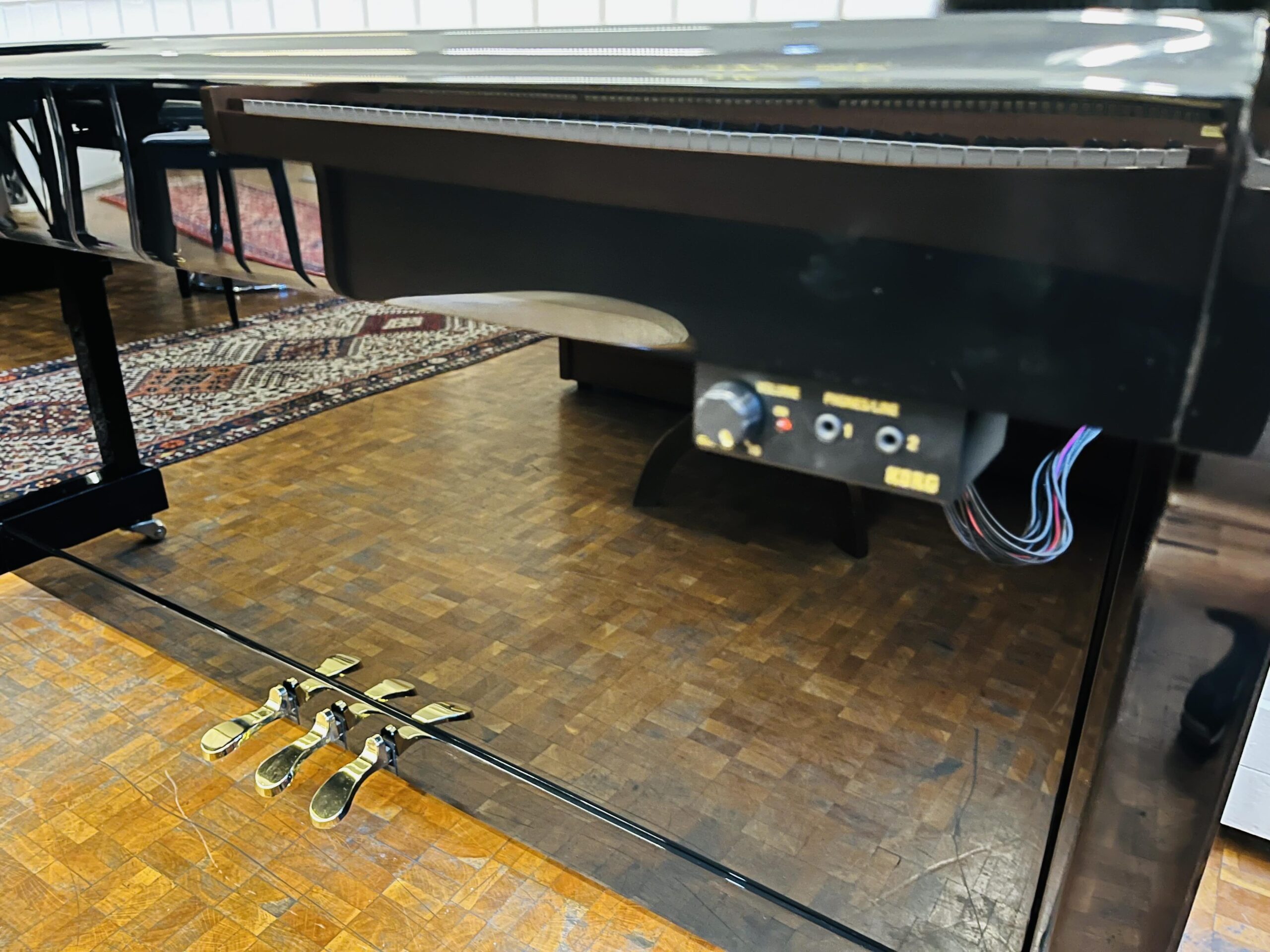 Dieses schwarze Mietklavier ist mit einer Silentfunktion ausgestattet: Korg-Silent Silentmodul. Mit der eingebauten Elektronik lädt es 24/7 zum Spielen ein. Lieferung ohne Kopfhörer. Sie können das Klavier normal spielen oder es stumm schalten und die Klänge Ihres Klavierspiels nur über Kopfhörer genießen.