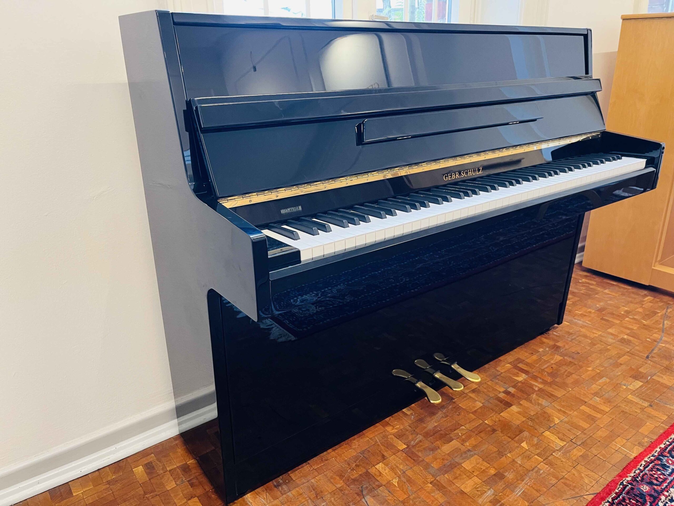 Ein besonders kleines Mietklavier in moderner Form und klassisch schwarz poliert. Mit aufstellbarem Deckel für mehr Klangvolumen und Moderator zum Einstellen auf Zimmerlautstärke. Perfekt für modern eingerichtete Wohnungen mit wenig Platz.