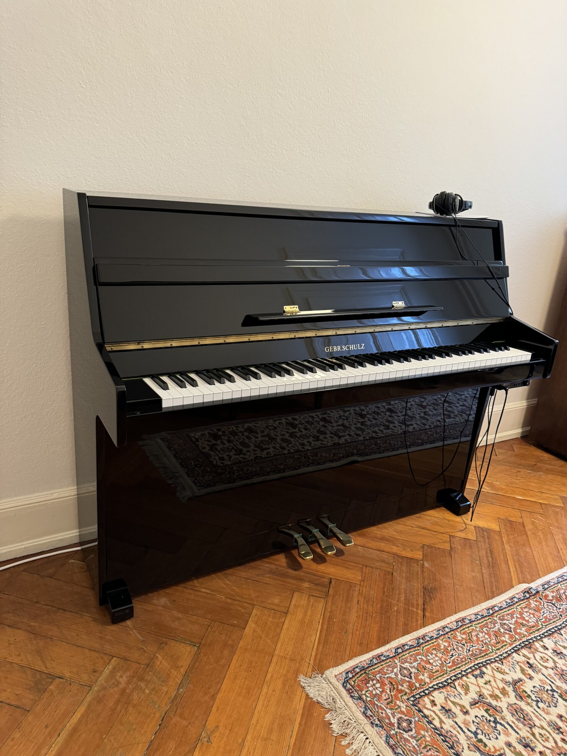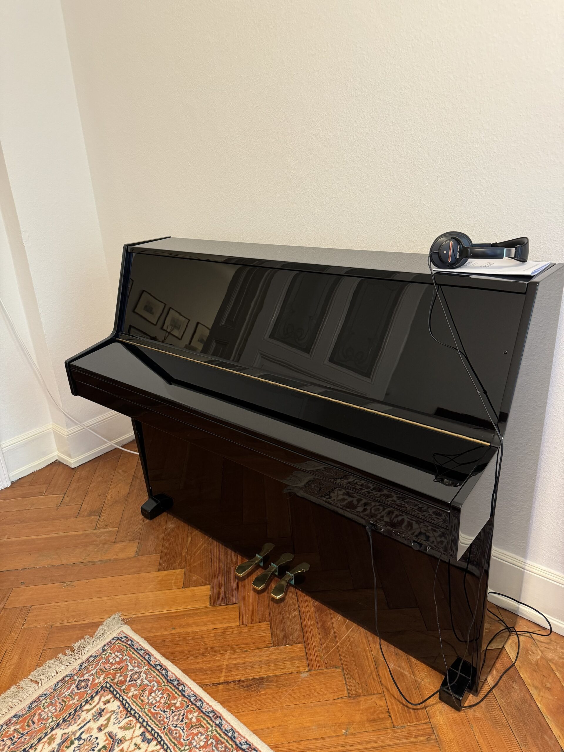 Dieses schwarz polierte Mietklavier ist mit einer Silentfunktion ausgestattet: AD-Silent Silentmodul. Sie können das Klavier normal spielen oder es stumm schalten und die Klänge Ihres Klavierspiels nur über Kopfhörer genießen.